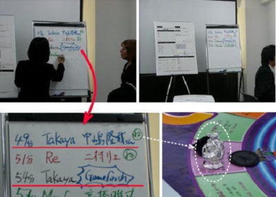 米国リッチダット社の公式トレーナーが、参加者の前にゲームの進行状況を書き出した様子。
