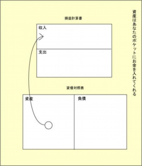 資産は財務諸表中でのキャッシュフロー(お金の流れ)は、次の図のようになっています。